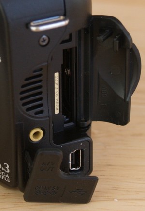 En el lado izquierdo de la cámara (cuando usted está buscando en la parte posterior), se encuentra la puerta de acceso a los medios de tarjetas xD-Picture Card slotand un altavoz. Adelante por el altavoz es un interruptor para alternar entre el modo de enfoque AF continuo, enfoque automático sencillo, y el enfoque manual. Un botón en el centro de este selector es un "one-touch AF" botón - más sobre esto en la sección de características.